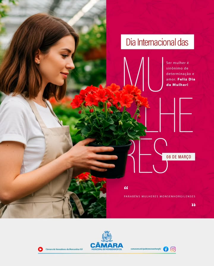 No dia 08 de março, a Câmara Municipal de Monsenhor Gil, sob a presidência de Sidney Éder Silva de Carvalho, presta uma homenagem especial a todas as mulheres monsengorgilenses pelo Dia Internacional da Mulher.
